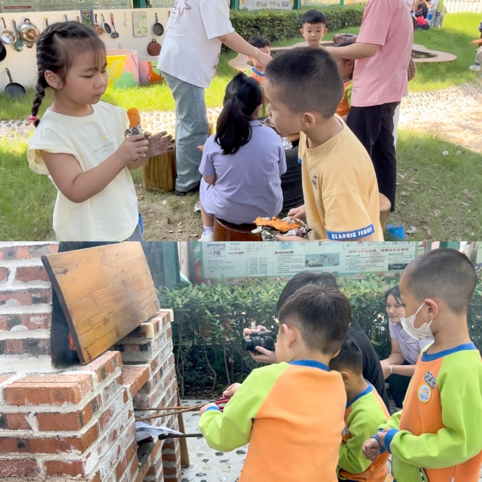 户外游戏时,大八班的孩子们烤起了红薯和板栗,“感”革命先辈在困难中永葆坚韧顽强的斗志,“忆”一粥一饭来之不易。孩子们一边品尝红薯,一边听老师讲述那段珍贵的红色记忆……品味着眼前的“红军餐”,孩子们似乎明白了从峥嵘岁月中走来的粗茶淡饭,无不在诉说着一粥一饭来之不易,也让幼儿更加清楚在日后要践行取之有度、爱物知恩、勤俭节约的传统美德。