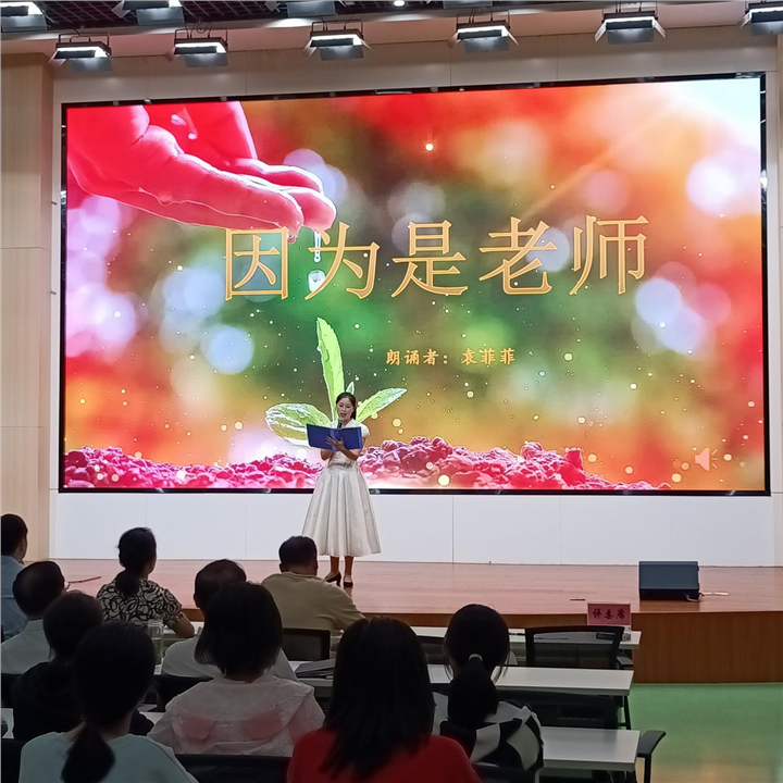 有的老师用激昂的语调讲述着自己在教育岗位上的成长与感悟,有的老师则用温馨的话语描绘着身边优秀教师的动人故事,有的老师用铮铮誓言表达了他们对党的教育事业的无比热爱和无私奉献。他们的朗诵或慷慨激昂,或婉转低回,无不触动着在场每一位听众的心弦,赢得全场阵阵热烈的掌声。