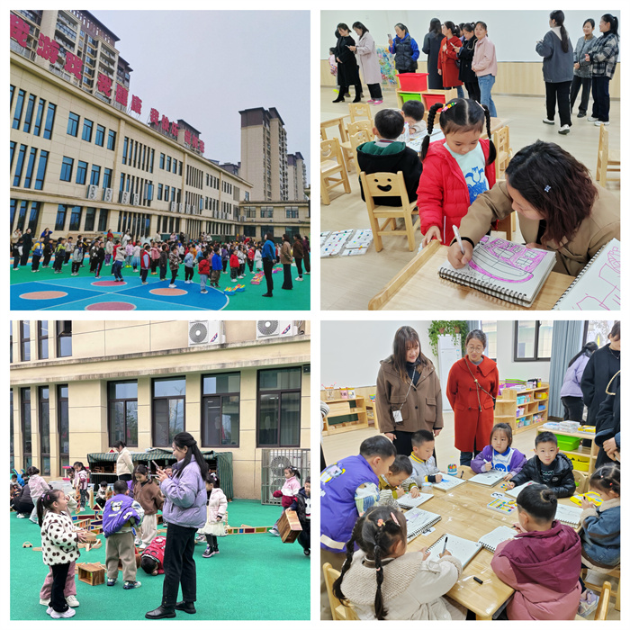 早操结束后,便迎来了备受期待的户外游戏环节。操场上,一个个充满挑战与创意的游戏区域吸引着家长们的目光。在积木建构区,孩子们化身小小建筑师,齐心协力搬运大型积木,搭建出一座座造型各异的城堡、桥梁和高楼,整个游戏过程中,老师们始终站在一旁默默观察,适时给予孩子们鼓励和引导,让孩子们在自主探索中发现问题、解决问题,充分发挥想象力和创造力。家长们则在一旁静静地观看,被孩子们专注投入的游戏状态所打动,对安吉游戏所倡导的“放手游戏,发现儿童”理念有了更深刻的理解和认同。