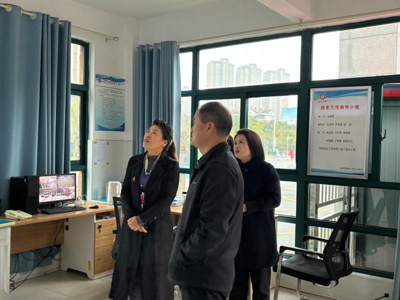 首先视察组视察了校园环境、校园安全设施,查看了门卫室和学校机房,了解学校的安全管理方方面面的措施细节,并听取了汪校长关于校园安全管理工作汇报。视察组对皋城小学细致的校园安全保障管理给予了充分肯定。