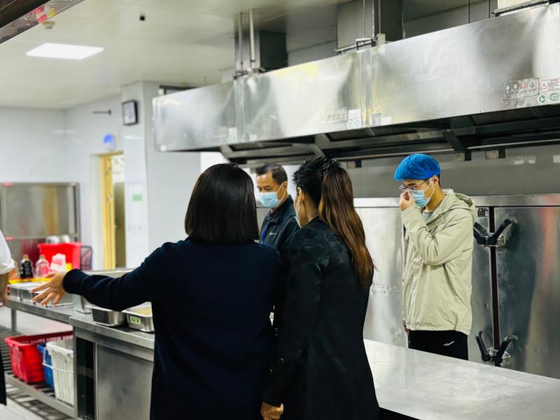 接着走进学校食堂,对食堂的设备设施、卫生条件、操作工序、进货渠道、食品留样、食品仓库等工作进行了逐项详细的查看。视察组通过现场查看,对学校食堂管理和食品安全工作给予了高度评价。