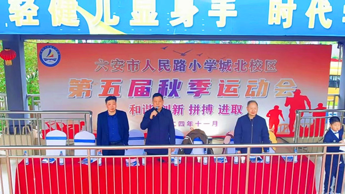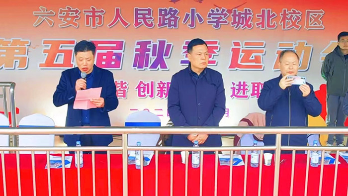许明章宣布六安市人民路小学城北校区第五届秋季运动会正式开幕。
