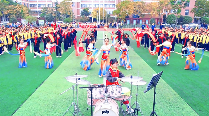 该校还精心准备了丰富多彩的文艺表演。舞蹈《中华美少年》,展现了同学们的活力与快乐;歌曲《我爱你中国》,表达了对祖国的热爱和祝福;舞蹈串烧+架子鼓《云宫讯音》、二胡独奏等节目传达了中国传统文化的勃勃生机、熠熠光华;形式活泼、动感十足的课间操、啦啦操、篮球操和花样跳绳等点燃了全场的激情,观众们沉浸在美妙的艺术享受之中。