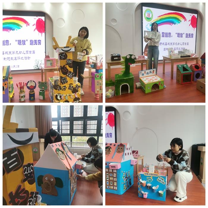 教师们发挥各自的奇思妙想,结合幼儿年龄和认知水平,针对游戏活动的开放性、趣味性等特点,将生活中常见的材料变废为宝,精心制作出一件件新颖独特、寓教于乐、玩法多样、美观实用的玩教具。