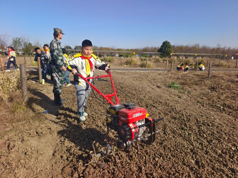 同学们对旋耕机十分好奇。在工作人员的讲解和指导下,同学们有模有样地尝试操作旋耕机,真真切切地体验农耕过程。旋耕机的使用不仅大大提高了耕地的效率,也让学生们深刻体会到了现代农业科技的魅力。
