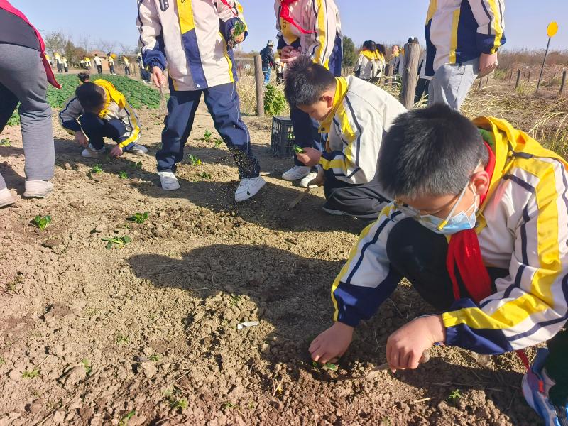 同学们种起来菜苗来也有模有样的,挖坑-放菜苗-填土。将小小的菜苗轻轻埋进土里,同学们在大自然的怀抱中精心照顾那些小小的生命。