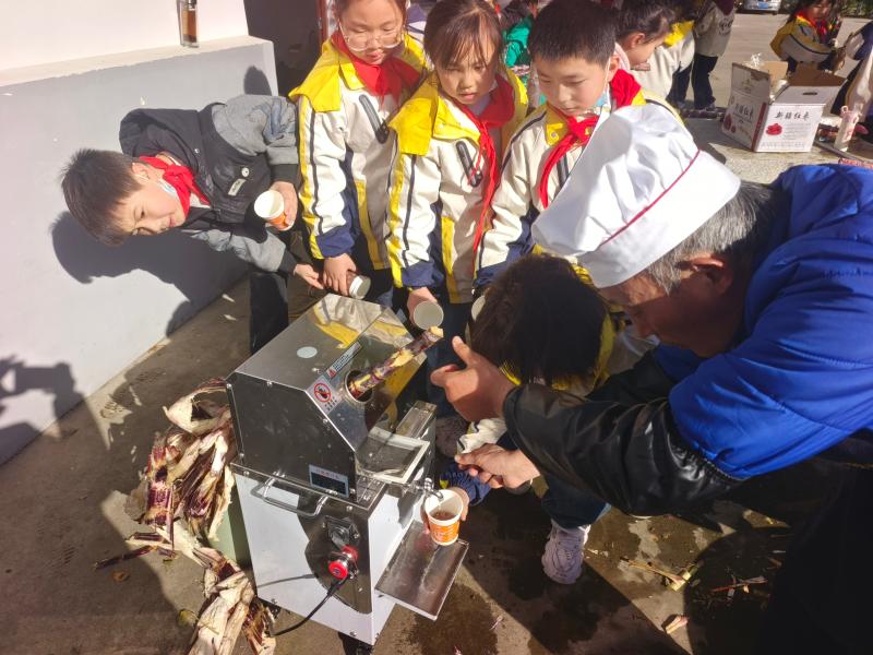 砍下的甘蔗被队员们收集起来,送到了榨汁机旁。在机器的轰鸣声中,一根根甘蔗被榨成了甘甜的汁液。队员们轮流操作榨汁机,看着清澈的甘蔗汁从机器中缓缓流出,心中充满了成就感和喜悦。这甘甜的汁液不仅滋润了队员们的味蕾,更滋润了他们的心田。