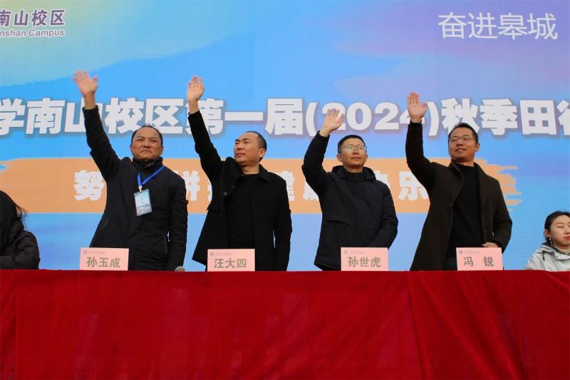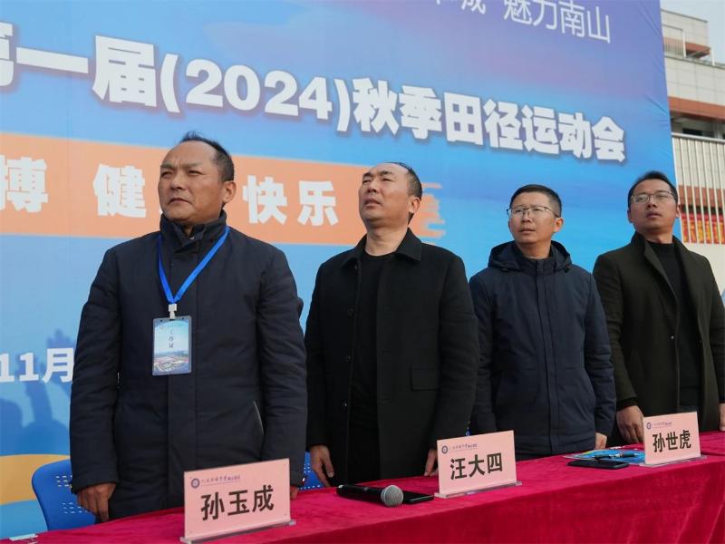 入场式结束后,还举行了升旗仪式。国旗、校旗、会旗冉冉升起,大家齐行注目礼,场面庄严肃穆。学校常务副校长孙世虎同志发表了热情洋溢的开幕词,他鼓励同学们以认真负责的态度和最饱满的热情投入到比赛中去,充分发挥自己的水平,充分展现南山校区学子全面发展的良好素质。