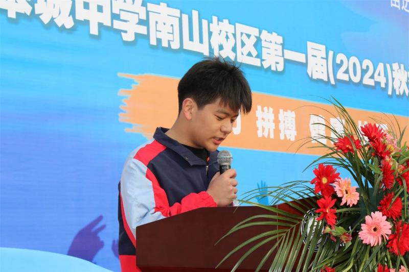随后,八(7)班潘明鑫同学,体育组王真宝老师分别代表运动员、裁判员进行了庄严宣誓,郑重承诺坚持公平竞赛,公正裁决,保证运动会圆满成功。