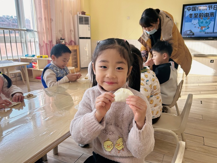 此次“迎冬至 寻年味”主题教育活动,不仅让幼儿了解了冬至的传统文化习俗,还锻炼了他们的动手能力和团队协作能力。同时,通过亲自动手制作、分享美食,孩子们也感受到了劳动的乐趣和成功的喜悦。在寒冷冬日,幼儿用纯真的笑容驱散了严寒,与同伴和老师分享冬至欢愉,在传承和弘扬中华优秀传统文化的同时也为童年留下珍贵的记忆。