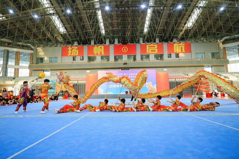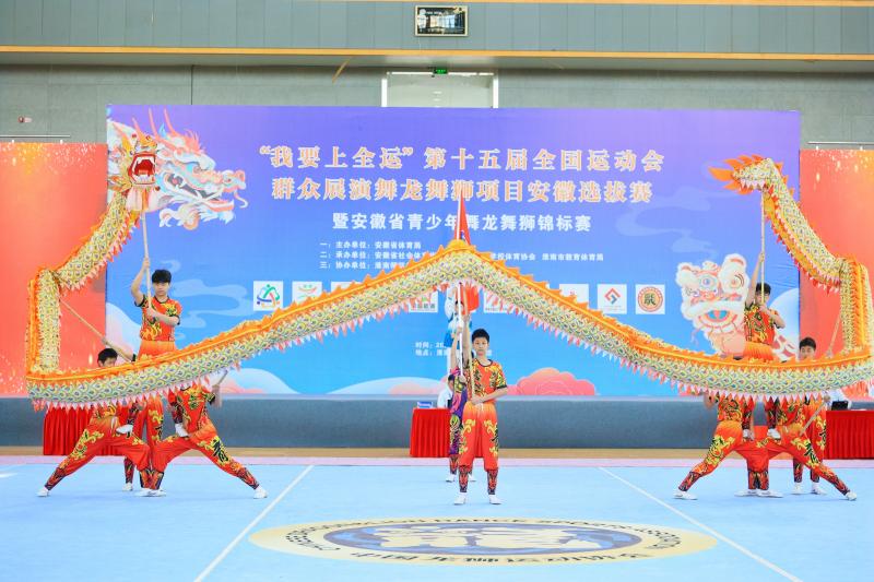 4月5日,“我要上全运”第十五届全国运动会群众展演舞龙舞狮项目安徽选拔赛暨安徽省青少年舞龙舞狮锦标赛在淮南市民生体育馆火热开赛。