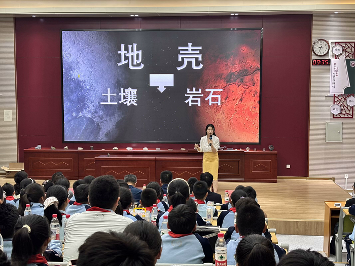 在ppt展示环节,安徽省地质矿产勘查局313地质队讲解员为学生们带来了一场关于地球科学知识的科普讲解盛宴。从地球的形状,到地球复杂的构成,再到关于岩石的悠久历史,学生们如同踏上了一次奇妙的地球探索之旅。大家全神贯注地聆听着老师的讲解,不时发出惊叹之声,对赖以生存的地球有了更为科学、深入的认识。