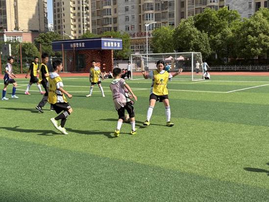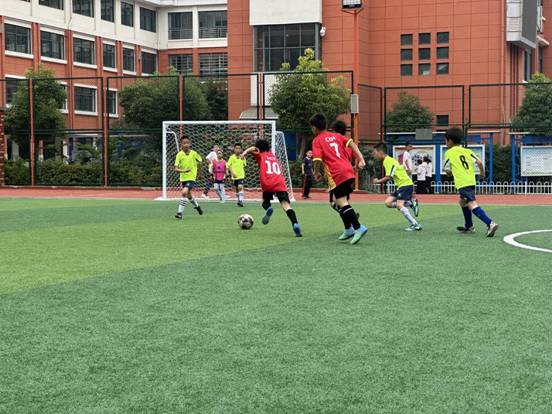 联赛采取班级循环赛与淘汰赛相结合的模式,既保证竞技性又兼顾参与度。赛场上,队员们身着统一队服,传接配合、攻防转换间尽显训练成果;场边啦啦队呐喊助威声此起彼伏,响亮且富有创意的口号展现班级凝聚力,形成了“人人参与、班班精彩”的足球文化氛围。