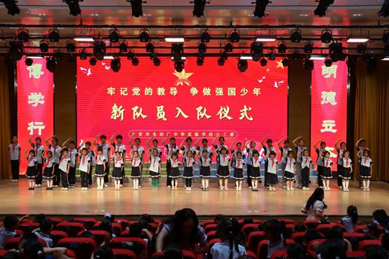 在大队辅导员的带领下,全体少先队员呼号:“准备着,为共产主义事业而奋斗!时刻准备着!”嘹亮的呼号声响彻报告厅,久久回荡,传递出少先队员们对党、对祖国、对人民的无限忠诚与热爱,展现出新时代少年先锋坚定的信念与昂扬的斗志,他们将以实际行动践行铮铮誓言,在星星火炬旗帜的指引下,沿着革命先辈的光辉足迹,为实现中华民族伟大复兴的中国梦接力奋斗、勇毅前行。