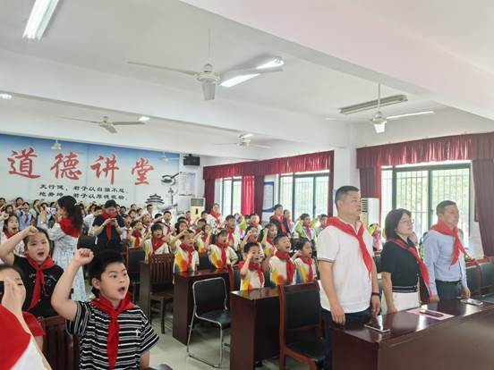 为了厚植新队员的爱党爱国情怀,培养其光荣感与归属感,6月4日上午,六安市人民路小学望城岗校区关工委、少工委隆重举行了一年级新队员入队仪式。