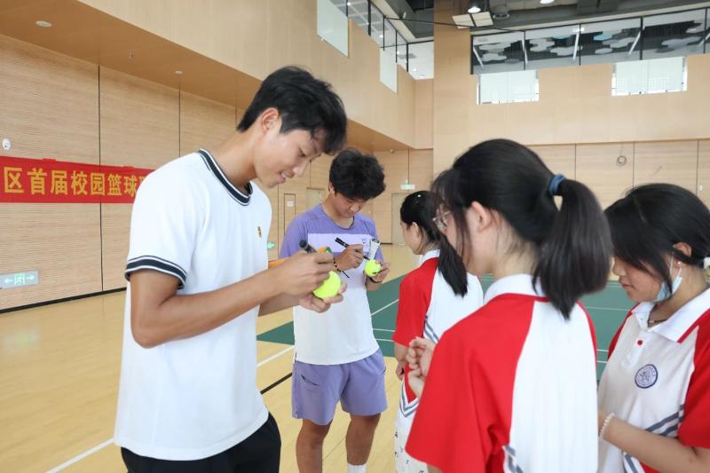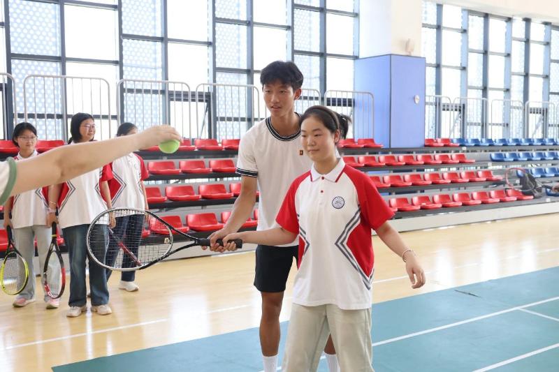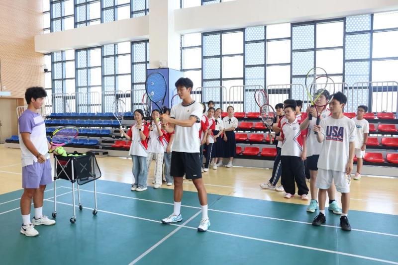 近日,2025金安国际网球公开赛的球员代表——孙键辰、黄瑞杰走进皋城中学南山校区,举办了一系列以“网球之光闪耀校园” 为主题的精彩活动,为校园里的师生们带来了一场别开生面的网球盛宴。此次活动旨在推广网球运动,激发学生对网球的兴趣,提升校园体育氛围。