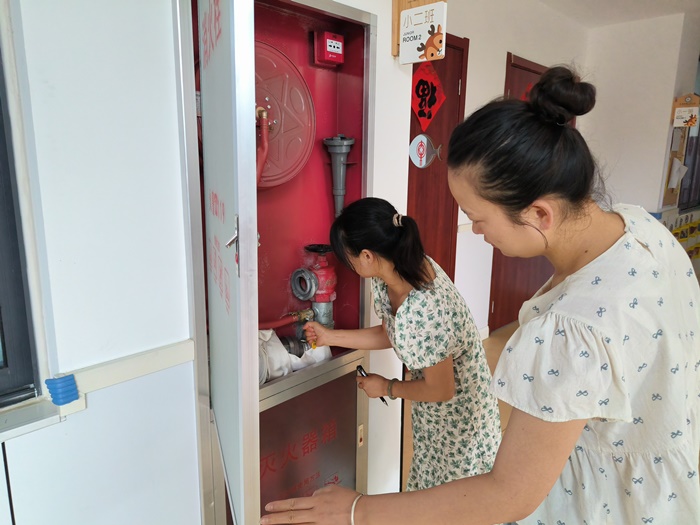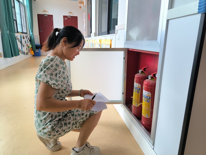 排查过程中,检查人员坚持边查边记、即查即改。对于发现部分区域灭火器巡检卡记录需更新、个别户外玩具轻微锈迹需维护处理等细微隐患,当场明确责任人,限定整改期限,确保闭环管理。
