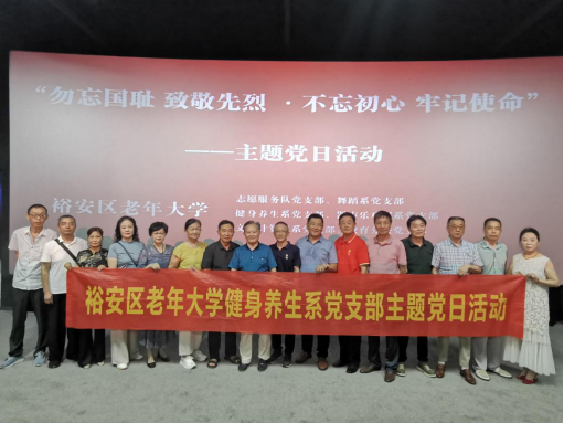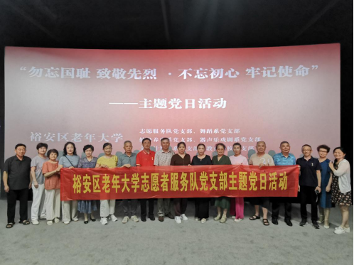 历史不容忘却,精神永续传承。7月31日下午,裕安区老年大学志愿服务队党支部、健身养生系党支部、舞蹈系党支部、器声乐戏剧系党支部、文史计算机系党支部、教育分校党支部等六个党支部,根据党建工作安排联合组织开展了一场主题鲜明、内涵深刻的主题党日活动——“勿忘国耻,致敬先烈,不忘初心,牢记使命”。区老年大学党委班子成员,党员代表近200人参加了活动。