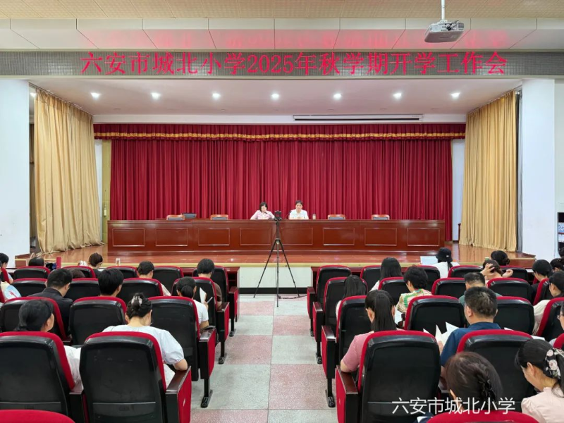 暑气未消秋意近,正是扬帆奋进时。8月18日上午,六安市城北小学在学校学术报告厅召开了2025年秋学期开学工作会。六安市城北小学全体教师参会,裕安区河西小学、金马小学全体教师通过视频连线在各校区同步参会。会议由六安市城北小学党委书记高兰主持。