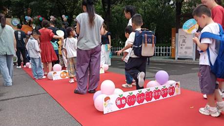 “鱼跃龙门”最受小朋友们欢迎。萌娃们在家长的牵手下,个个笑脸绽放,兴致勃勃地穿过装饰精美的“龙门”,一脸憧憬,期待满满。