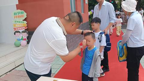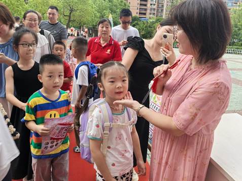 “朱砂启智”将整个仪式推向高潮。该校党支部书记、校长张本霞,副校长孙军,手执朱笔,在学童们的眉心处轻轻一点,留下一颗颗“智慧痣”,帮助孩子们开启了人生智慧之旅,寄托着目明心亮、好学善思的美好祝愿。