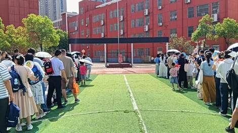 最后,全体一年级新生及其家长集中于操场,学校举行了简短的入学典礼。张本霞校长就学校的办学理念、新生入学后的注意事项等,作了明确与强调,并提出要求与希望。她要求家长们平时积极关注学校、关注孩子们的点滴进步与成长,希望家长们全力支持、配合学校的各项工作,家校携手,共育未来。