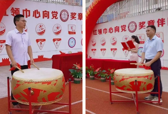 “击鼓明志”——一声“立德”,二声“立志”,三声“立学”,学生们用力敲响鼓面,每一声洪亮的鼓声都承载着一个美好的志向,标志着他们对未来学习生活正式启航。
