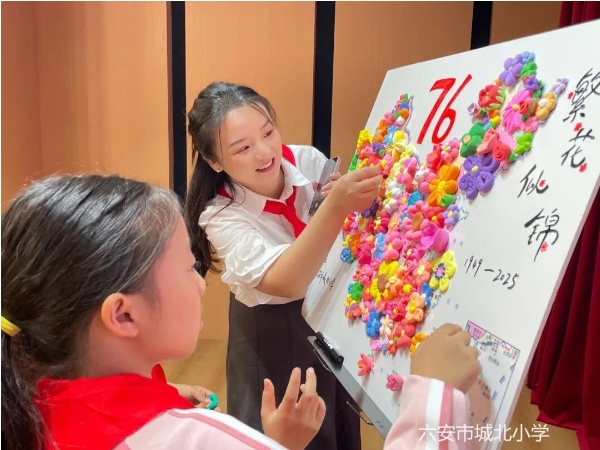 为庆祝中华人民共和国成立76周年,庆祝中华人民共和国人民抗日战争胜利80周年,铸牢中华民族共同体意识,9月27日,六安市城北小学开展了“传承红色基因 共筑团结初心”民族团结进步月主题活动。