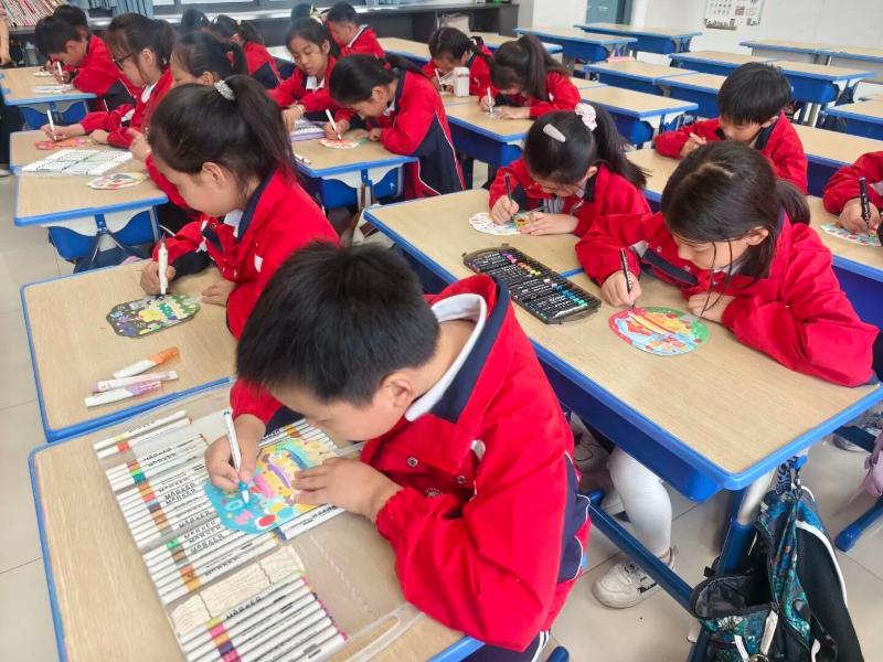 团圆扇面画,巧手迎中秋。结合中秋佳节,“团圆扇面画”活动充满了传统文化的韵味。队员们发挥想象力,在圆圆的扇面上绘制明月、玉兔、桂花、团圆等中秋元素。一把把普通的团扇,在队员们的巧手创作下,变成了寓意团圆美满、寄托思念的艺术品,让队员们深刻感受到了中华传统节日的独特魅力。