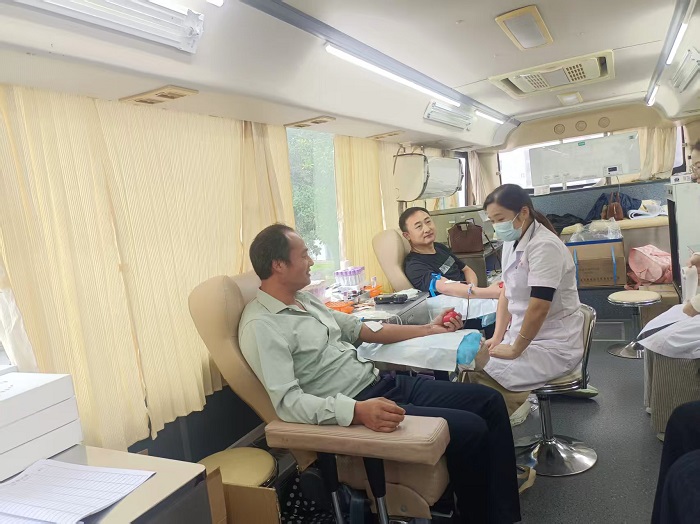 在献血过程中,大家相互交流、相互鼓励,现场气氛温馨而热烈。殷红的血液顺着导管缓缓流入储血袋,每一袋血液都承载着教职工们的爱心与希望,它们将被送往需要的地方,为医疗救治工作提供有力支持,为生命续航。