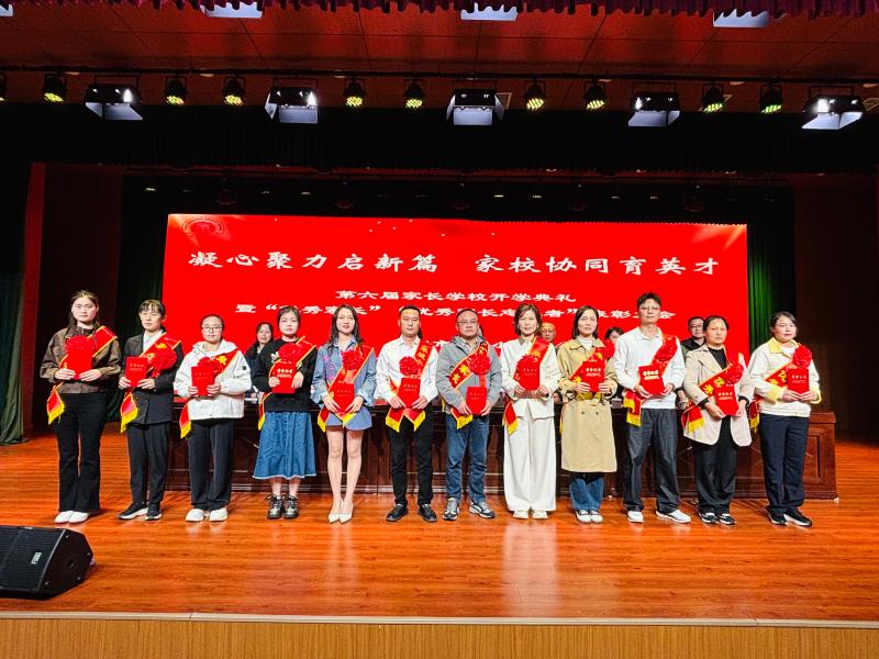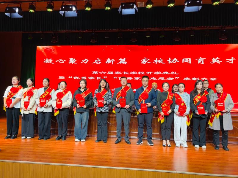 在激昂的音乐声中,受表彰的“优秀家长”代表与“优秀家长志愿者”代表依次上台,接受领导颁奖。一张张荣誉证书,不仅是对他们付出的肯定,更成为现场所有家长学习的榜样,彰显出家校共育中“伙伴”的力量。