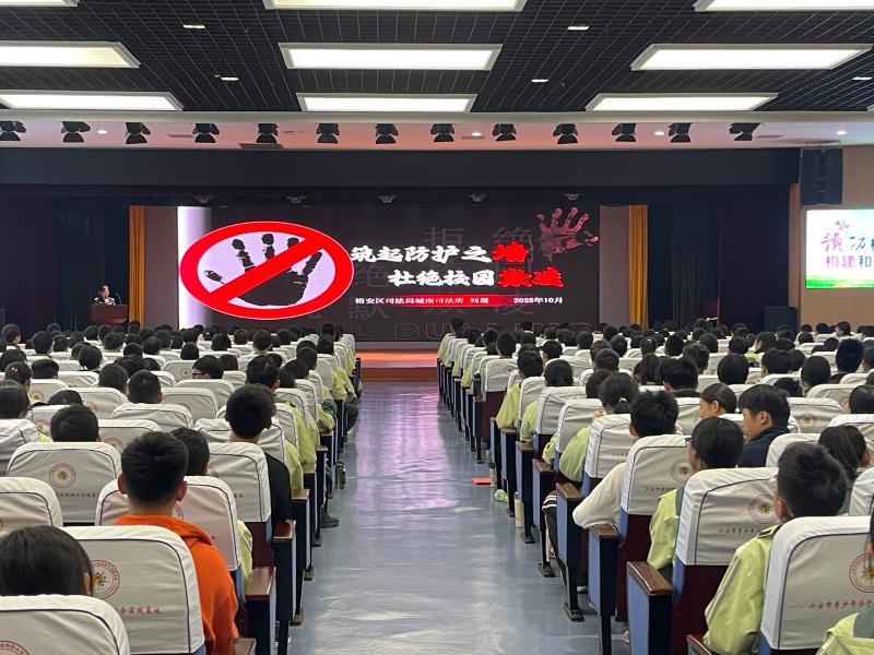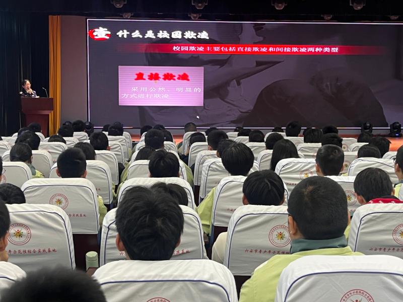 近年来,恶性欺凌事件时有发生,严重伤害了未成年人身心健康,冲击着社会道德底线。如何唤醒全民对欺凌防治工作的责任意识与参与意识,营造对欺凌”零容忍’的社会生态环境呢?10月30日下午,六安市裕安区城南镇司法所所长刘谡走进六安市青少年示范性综合实践基地,为500余名师生带来了一堂生动且深刻的预防校园欺凌专题法治课。