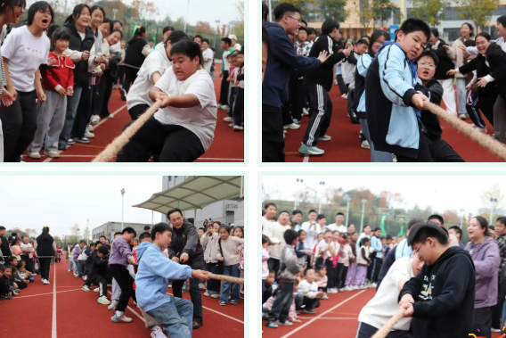 赛场上选手奋勇争先,赛场外加油声此起彼伏,汇聚成一道道激昂向上、闪耀青春的风景线,如同一首沸腾的交响诗篇。尤其初中部的拔河比赛,将运动热情推向最高潮。