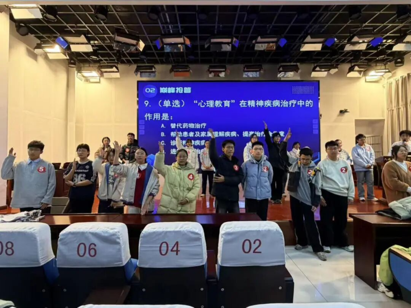 “发现同学有自伤行为,正确的做法是什么?”“世界精神卫生日是哪一天?”“全国心理援助热线是多少?”比赛现场,这些极具现实意义的问题引发阵阵讨论。