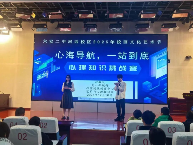 为丰富校园文化艺术节内涵,创新心理健康教育形式,六安二中河西校区于12月10日下午在尚善楼学术报告厅成功举办“2025年校园文化艺术节活动——心海导航,一站到底”心理知识挑战赛。