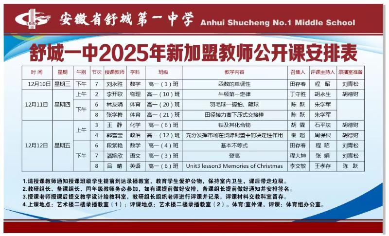 舒城一中成功举办2025年新教师公开课展示活动