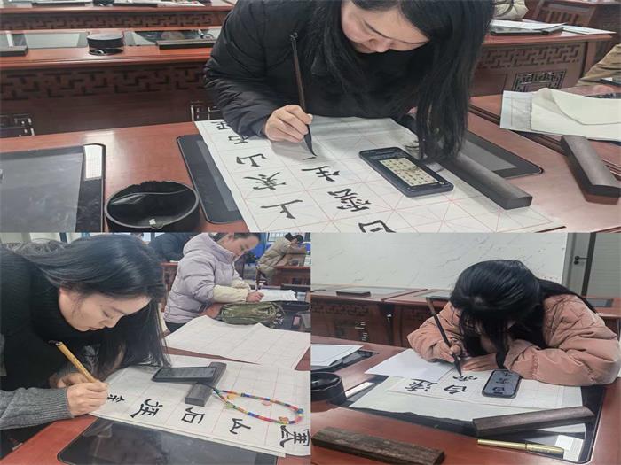 比赛分“三字”书写与“一话”展示两大环节,同步有序开展。钢笔字书写环节,老师们坐姿端正、运笔流畅,一笔一画工整规范,或清秀俊逸、或刚劲有力,方寸稿纸间尽显文字的端庄之美;毛笔字书写环节,大家悬腕运笔、起承转合,墨色浓淡相宜,字体或古朴厚重、或潇洒飘逸,将汉字的韵味与书法的魅力展现得淋漓尽致;粉笔字书写环节,老师们在黑板上从容落笔,横平竖直见功底,撇捺舒展显风采,一行行整洁美观的粉笔字,不仅展现了扎实的书写功底,更彰显了严谨认真的教学态度。普通话展示环节,参赛教师们随机抽取朗诵篇目从容登台。大家发音标准、语调抑扬顿挫,语速张弛有度,情感真挚动人,充分展现了新时代教师良好的语言素养与表达能力,赢得了评委与在场教师的阵阵掌声。