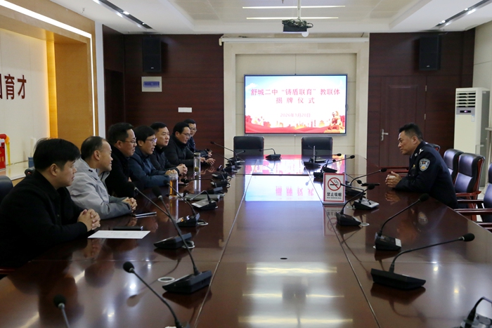 郭军在讲话中指出,挂牌“铸盾联育”教联体是深入贯彻落实舒城县家校社协同育人“教联体”建设工作部署的重要举措,公安将立足岗位职责,开展安全护航、健康守护等行动,形成育人合力,为学生营造安全、健康、优质的成长环境做出应有贡献。