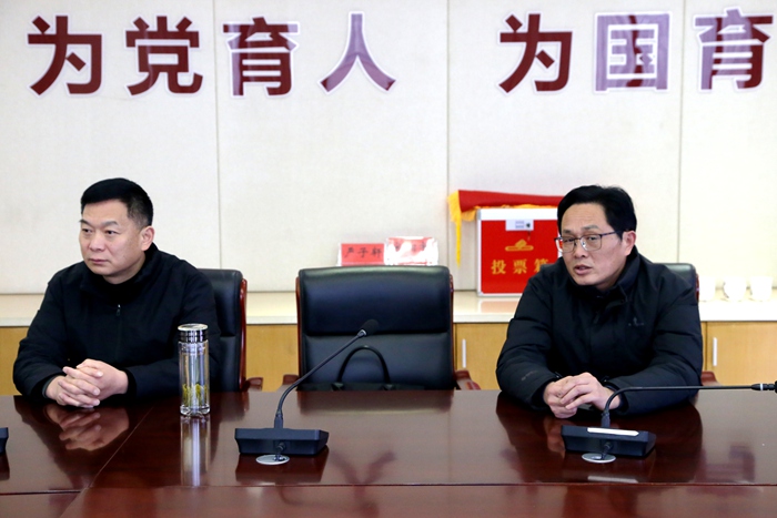 校党总支书记陈爱鹏致辞,对县教育局、公安局等多部门长期以来对学校各项安全工作的指导和支持表示感谢。他指出,舒城二中“铸盾联育”教联体的成立体现了社会各界对该校教育教学工作的高度重视,相信教联体将形成齐抓共管、协同育安的强大合力,全面提升该校安全治理能力与育人成效,为学生营造更加安全、和谐、健康的成长环境。