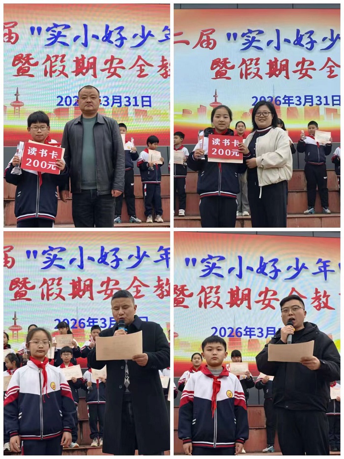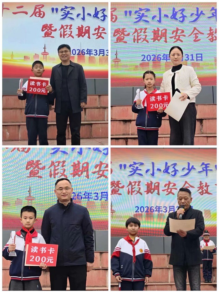 榜样的力量催人奋进,安全的守护温暖相伴。此次“实小好少年”颁奖典礼暨假期安全教育活动,既是学校落实立德树人根本任务、深化德育工作的重要举措,也是筑牢假期安全防线的关键行动。活动在校园中营造了“学榜样、争先进、筑梦想、守安全”的良好氛围,不仅让全体同学在榜样的引领下坚定理想、砥砺前行,更让安全理念深入人心,为同学们的假期生活保驾护航。全体实小学子将以榜样为帆,以安全为盾,在成长的道路上稳步前行,努力成长为德智体美劳全面发展的新时代好少年。(方慧 赵凯)